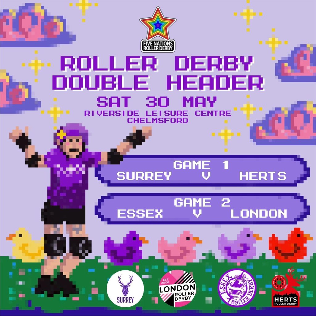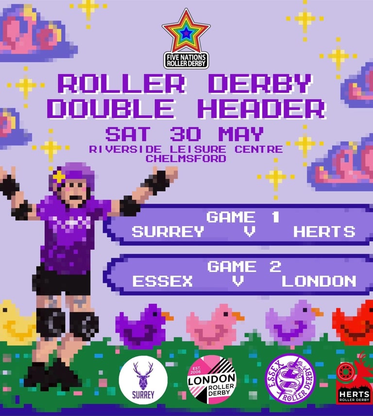 Get ready for a high energy day of live roller derby as Essex Roller Derby hosts an exciting double header at Riverside Leisure Centre. On the 30th of May we’re bringing the Tier 4 Women South 5 Nations competition to Chelmsford, featuring two competitive matchups showcasing skill, strategy, and full-contact intensity.