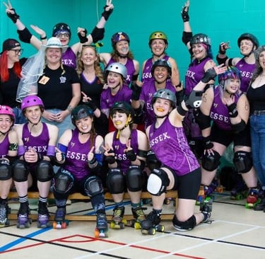 Our main league skaters train on Sundays at Riverside Leisure Centre, right at the heart of Chelmsford. A typical training session includes skating skills, strategic and tactical drills, gameplay scenarios and scrimmage. It's also the opportunity for referees and NSOs (Non-Skating Officials) to come and practice or learn how to officiate.