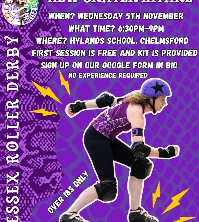 Ever dreamed of becoming a roller derby player? Here is your chance! Essex Roller Derby is opening up recruitment for the Winter 2025 New Skater Programme. Whether you've skated before or never laced up a pair of skates, we'll teach you everything, from the fundamentals of roller skating to the roller derby skills you'll need to be confident on and off the track.